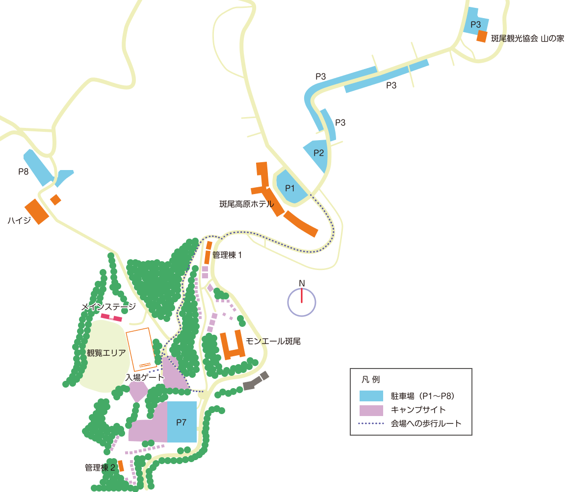- 各自で交通手段・宿泊施設を確保の上ご来場ください。会場周辺、及び各公共交通機関周辺での野宿は厳禁です。また、駐車券をお持ちでない方の車でのご来場、駐車はできませんので予めご了承ください。